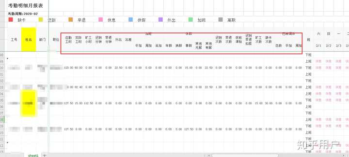 你这个表太复杂了,简直能把人看得眼瞎。我建议你可以用服服系统。里边每个月的考勤明细报表正常打卡、迟到、缺卡、请假、外出等等不同情况都会自动标出来,到时候直接按照色块筛选就可以。考勤明细表的前半截是考勤数据汇总,可以通过筛选迅速的选出来迟到的人。