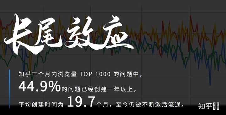 知乎优质内容超长待机,霸屏力持久。一般信息流广告生命周期是一个月左右,公众号10万+的文章才2~3周,但是知乎TOP 1000的问题中,44.9%的问题创建时间超过一年,平均创建时间长达19.7个月,优势非常明显。