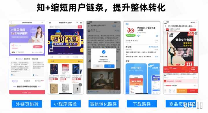 知+有外链跳转、微信转化路径、商品页路径、小程序路径和下载路径等五种转化形式,可以满足各种推广需求。