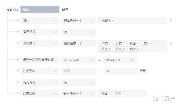 举个例子,咱们是做知识产权服务的,那要找有发明专利申请需求的企业。