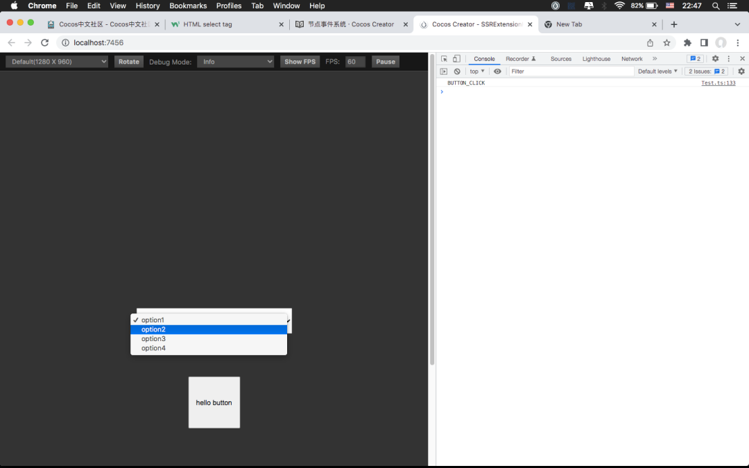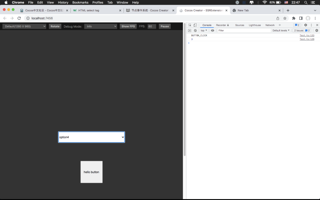 同时我们还优化了 SSRElementCore 的事件机制,让它更加的贴近 CocosCreator 风格 ,从而降低使用者的学习成本。