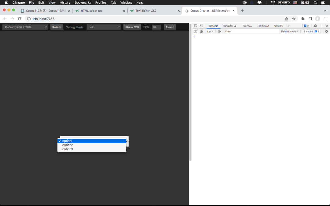Node添加一个SSRSelect 组件和多个SSROption组件Node添加一个SSRSelect,Node添加多个子节点,每个子节点有一个SSROption组件