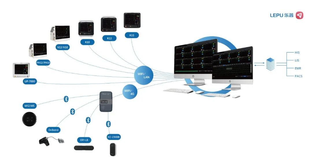 基于丰富的产品矩阵和服务,以人工智能、互联网、云平台技术为核心,乐普搭建了集动态心电、静态心电、动态血压、中央监护等网络多网合一的中央监护系统eCardloT,提供覆盖心血管类疾病的预防筛查一急救一诊断一治疗一康复一随访管理等在内的全周期闭环服务,支持院内/院外一站式监护,实现区域互联、分级诊疗、上下转诊、协同管理等功能,构建多层级紧密型医共体平台,全面推动优质医疗资源扩容下沉,建立优质高效医疗卫生服务体系。