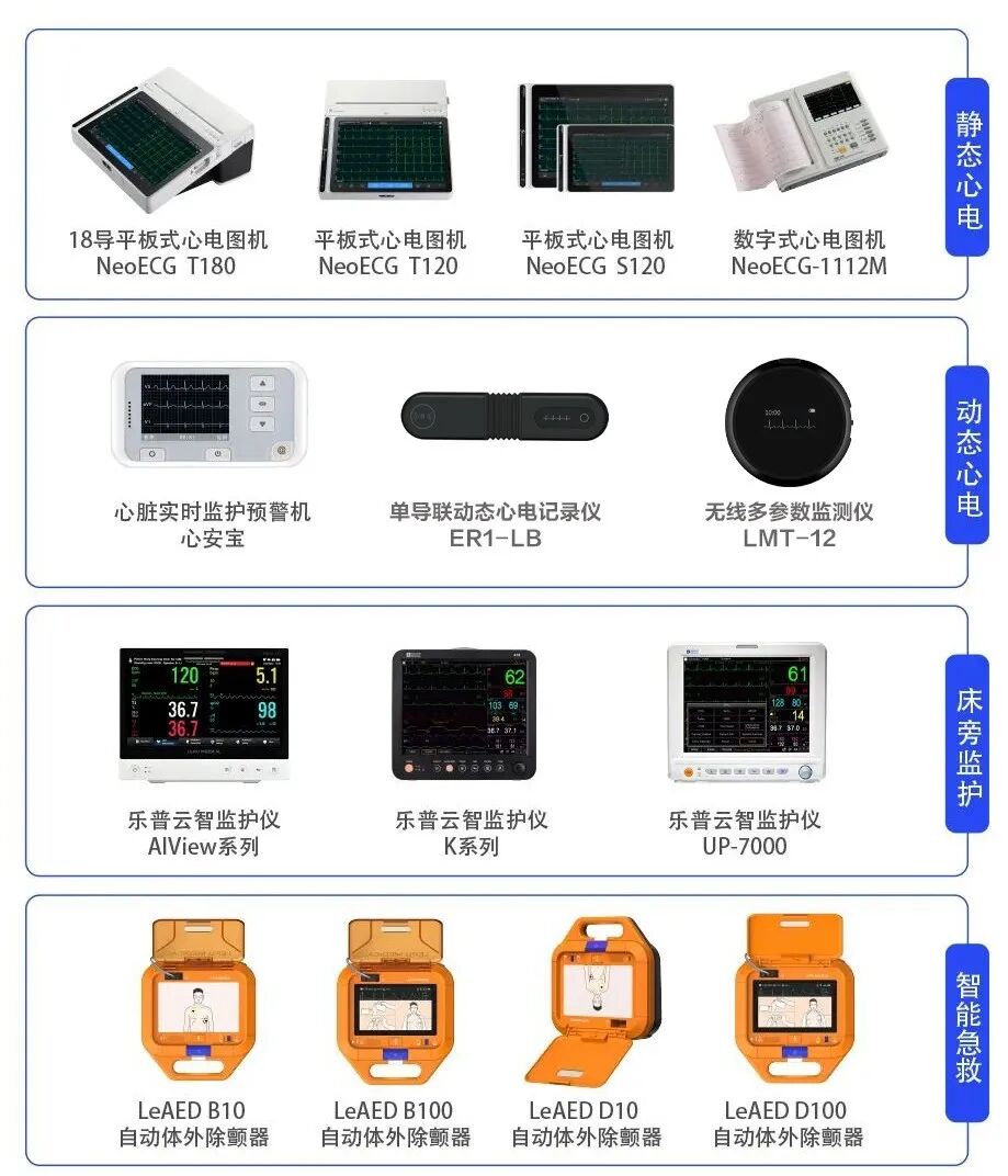 作为国内人工智能医疗行业领先者,乐普医疗AI事业部积极响应国家政策,始终致力于推动医疗设备的技术创新和升级,依托前沿物联网、大数据、云平台、人工智能等技术,推出了包括AED自动体外除颤器、多参数监护仪、心电图机、中央监护系统在内的一系列高品质医疗设备和服务,为各级医疗机构提供了全方位的支持,助力提升医疗服务质量,保障患者健康。