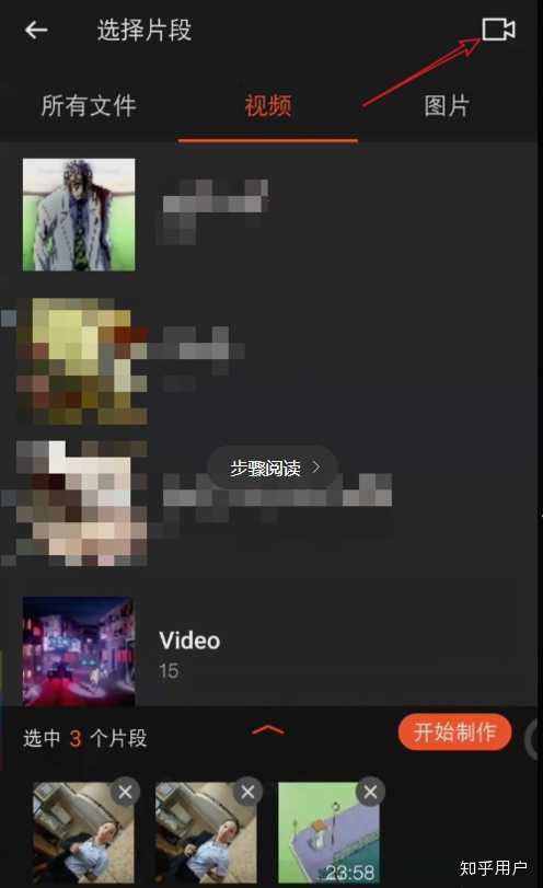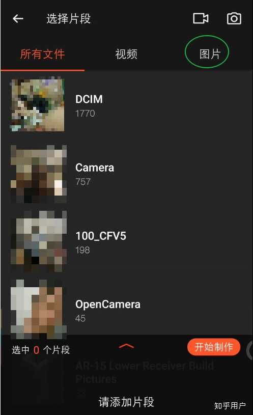 一段完整的视频应当包含视频图片这些基本的元素,所以首先要根据自己脑子的构思选取图片已经在视频当中插入图片。APP会列出手机内的所有的视频以及图片,这里点击顶部的图片然后选取图片,接着点击顶部的返回箭头,在视频这里选取视频,选取的视频会有个缩略图在APP底部,如果要自己拍摄的点击右上角的摄像头进行拍摄。导入的图片或视频位置不对,可以直接按住图片或者视频素材直接拖动即可调换位置。