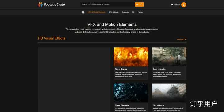 当我们剪辑技术提升到了一定的程度以后,肯定会有人想要在视频上加点小效果,这个网站就能很好的满足你的需求,footagecrate含有大量的高清通道素材,有一些效果很有趣,抖音上很多效果都是从这个网站下载的。里面还有一些音频素材以及制作教程。