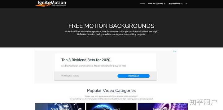 有很多背景动画视频,循环效果的背景视频最多。还有很多太空类的视频,如何你想寻找科技感稍微强一点的素材网站,Ignite Motion是个非常好的选择。