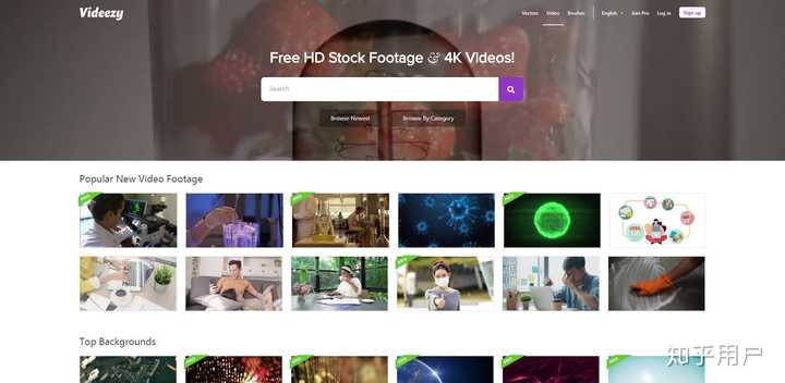 与前面两个软件不同的是,videezy除了有很多高清素材视频以外,还有许多背景视频以及AE模板。网站有很详细的分类,例如自然素材、动物素材、人物素材等,不过这个网站是全英文的,英文不好的话,建议打开翻译工具。