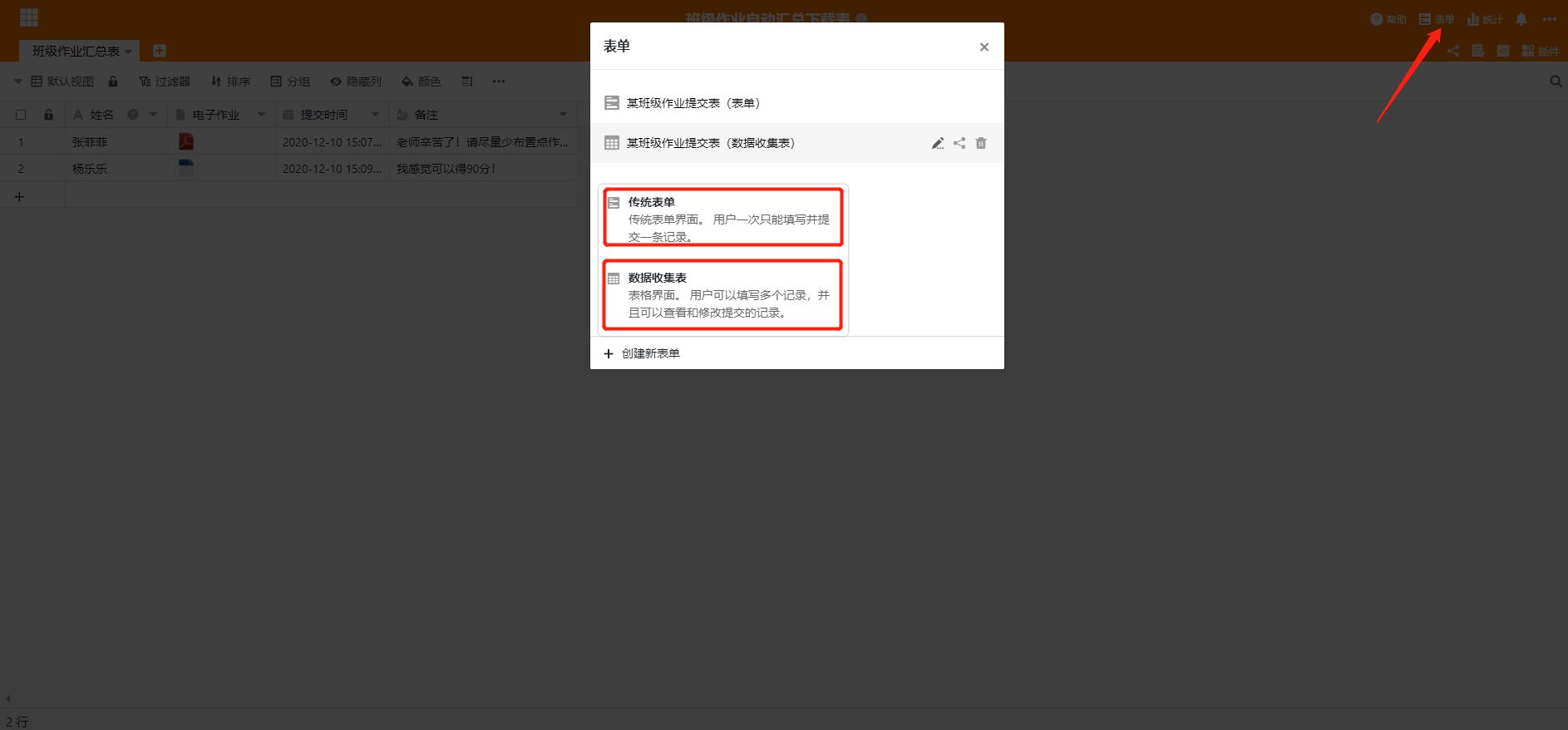 一、用 SeaTable 的“表单”或“数据收集表”收集和自动汇总每个同学的电子作业