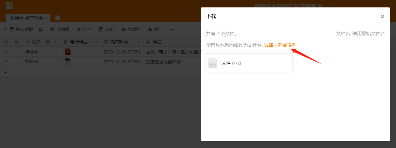 二、以提交人姓名等信息给每个电子作业自动命名并打包下载