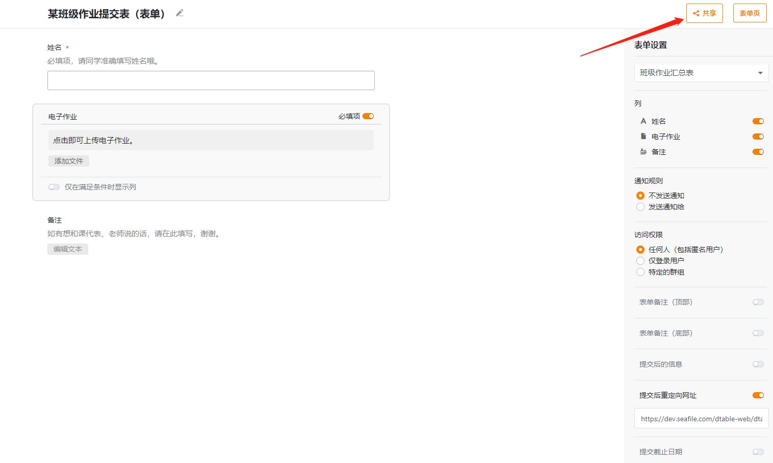 设置完成后,就可以直接点击上方的“共享”按钮,把表单链接或二维码发给同学们了。