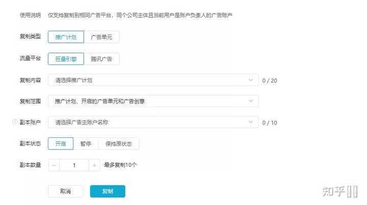 批量复制功能支持批量复制腾讯广告、巨量引擎的广告,腾讯广告可一次性复制10个广告,巨量引擎可轻松跨账户复制广告。