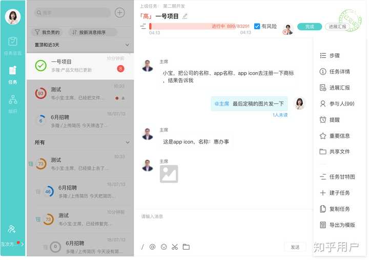 单个群组沟通,有任务重要的事在任务群体提出来,快速解决不掖着。