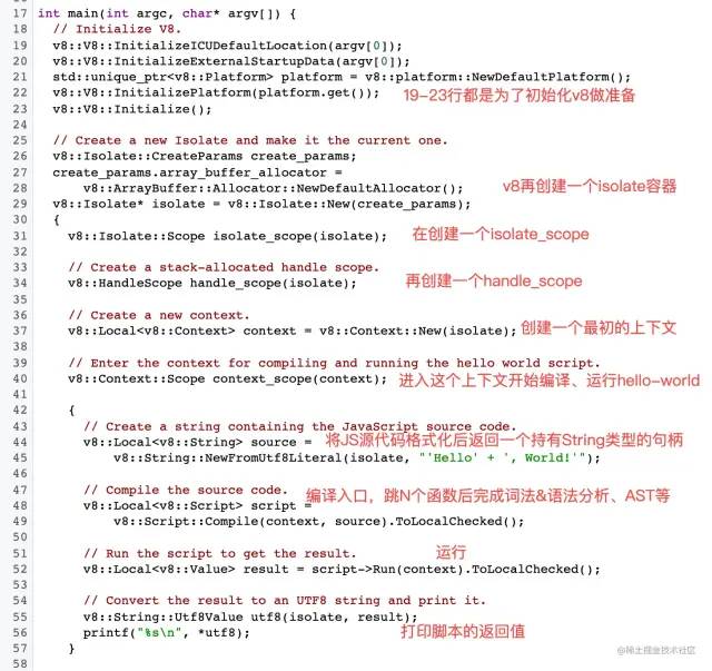 如果在v8,可以先从 v8/samples/hello-world.cc 入手,看看流程,我也是后来才发现这个文件,😭😭