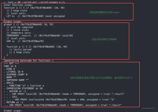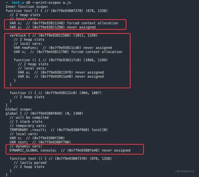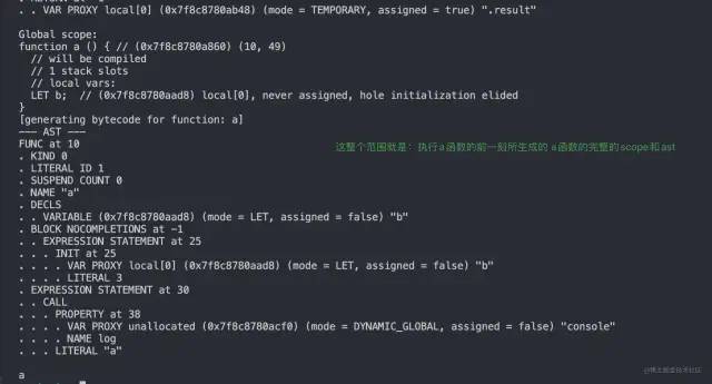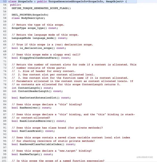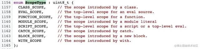 这是描述当前上下文的作用域信息。它包含静态分配的上下文槽的名称(提前说一下,很多时候我们的变量会被直接放在 context 中),和栈分配的locals。名称需要用于存在“with”或“eval”时的动态查找,以及为了调试器。