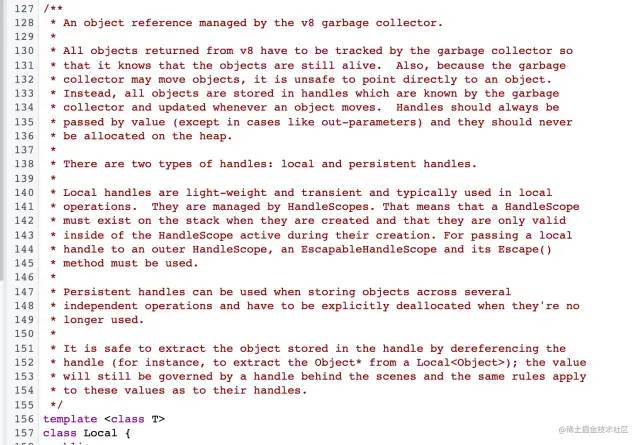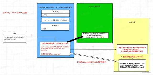 从 v8 返回的所有对象都必须由垃圾收集器跟踪,为了知道它们是否还活着。又因为垃圾收集器可能会移动对象,直接指向一个对象是不安全的。相反,所有对象都存储在垃圾收集器所知道的句柄中,并在对象移动时更新句柄。Handles应该总是按值传递(地址也是值,一般用16进制)(除了像out-parameters这样的情况--我并不知道这句个out-parameters是指什么,不过对本文应该没影响),并且它们不应该在堆上分配。
