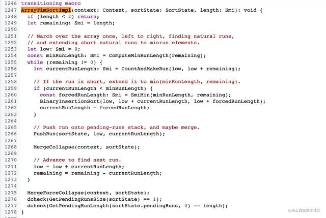 首先最新的v8是用它们自己的研发的语言Torque,写的:v8/third\_party/v8/builtins/array-sort.tq[6]
