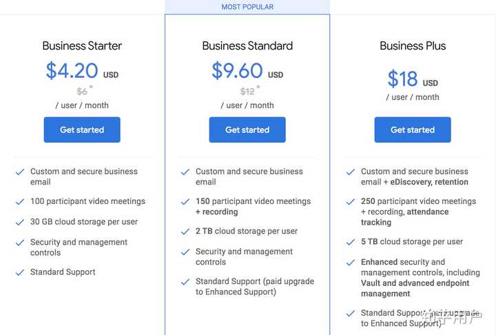 我司用的是起步版本,每月每人4.2美金,30 GB,换算成人民币大约是330元一年。感觉就算是中小创业公司也能承受这笔费用。