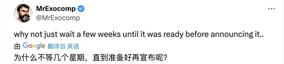对此,有人质疑道,OpenAI 这么做究竟是为什么,为什么不能等几周,直到全部准备好后再宣布呢?