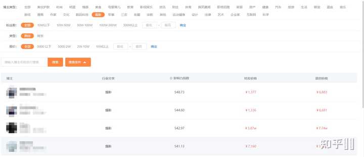 此外还可以根据行业来查看博主刊例价,有许多价格可供参考。