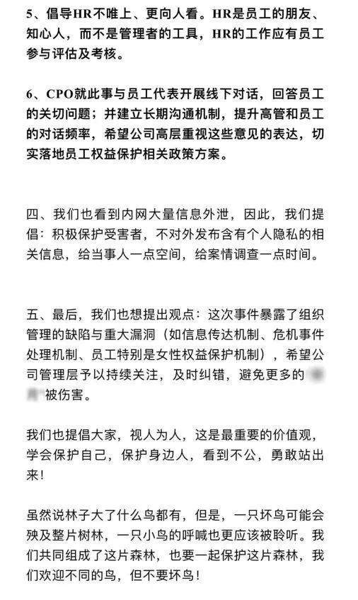 倡导HR、CPO及公司高管与员工的对话机制,希望公司管理层能够及时纠错,避免更多人受到伤害。