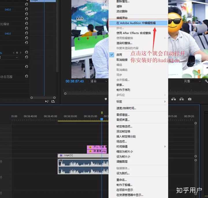 一:选中你要处理的音频,鼠标左键按照下图操作就可以自动打开Audition