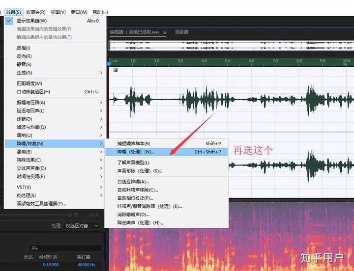 七:按照下图操作,给整段音频进行噪声处理,快捷键是Ctrl+Shift+P
