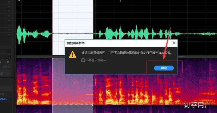 五:完事儿之后就会提示你,在你确定要用这段噪音过后,点击确定就好啦,如果觉得自己选择的噪声样本不合适,可以从图三重新开始选。