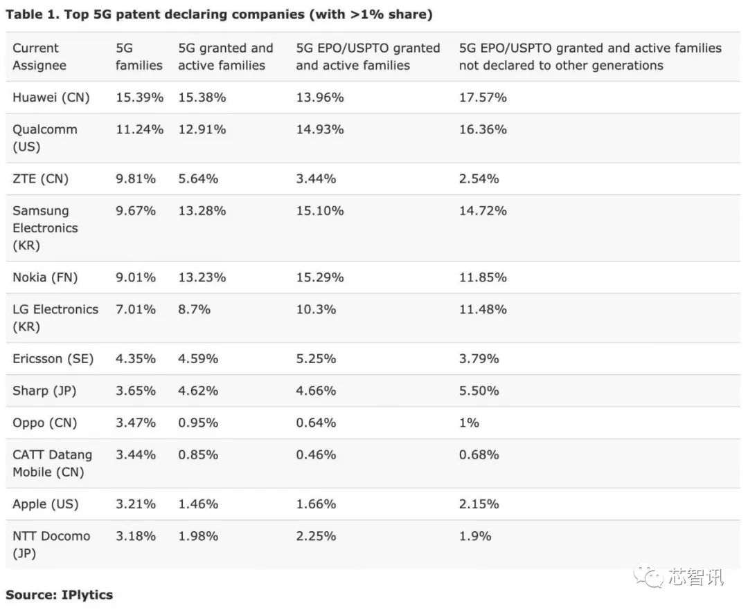在5G专利方面,德国专利信息分析机构IPlytics发布的报告显示,截至2021年2月,全球5G标准必要专利族声明排行榜中,华为排名全球第一,占据了15.39%的份额。