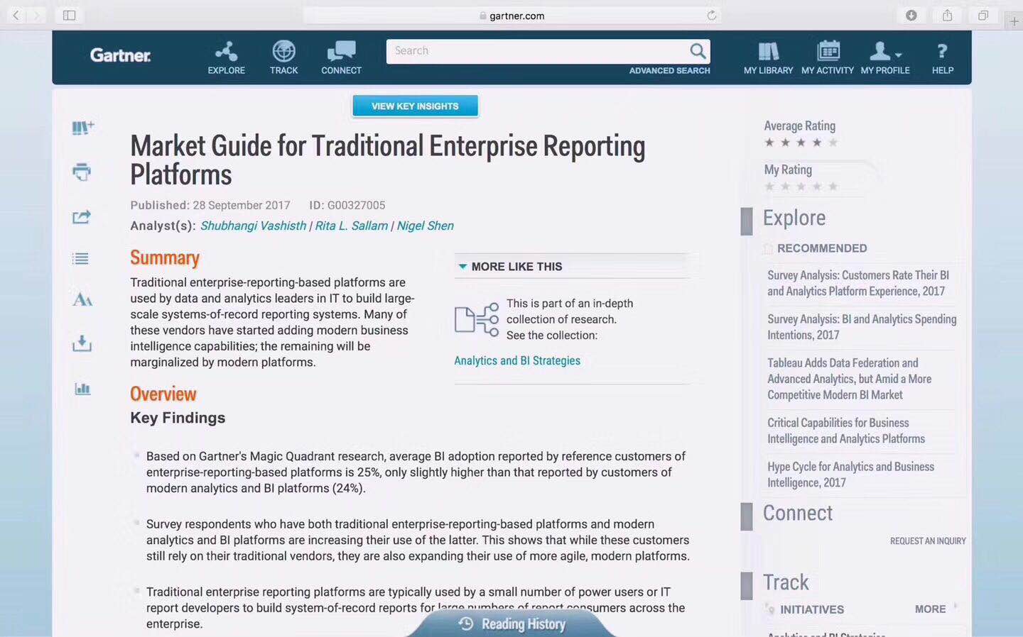 Gartner认为,商业智能和分析平台市场的主流已经从IT主导分析报表转向业务主导分析。对比2016年魔力象限的BI厂商,国外Tableau、微软等自助式BI一路领先。