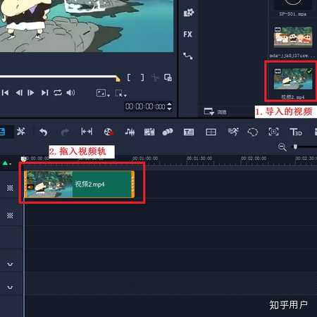 3.导入视频后出现图3中画面,把导入的视频拖入视频轨中。