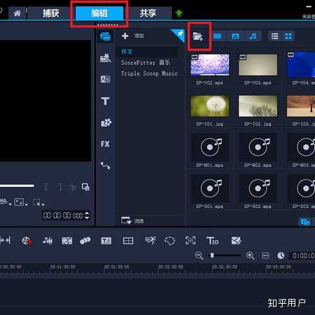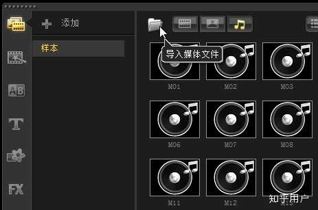 四、另外一种方法,在素材库中单击“显示音频文件”按钮。
