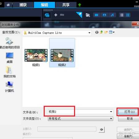 2.选择要进行配音的视频,小编选择视频2进行视频配音操作,点击“打开”按钮,导入视频。