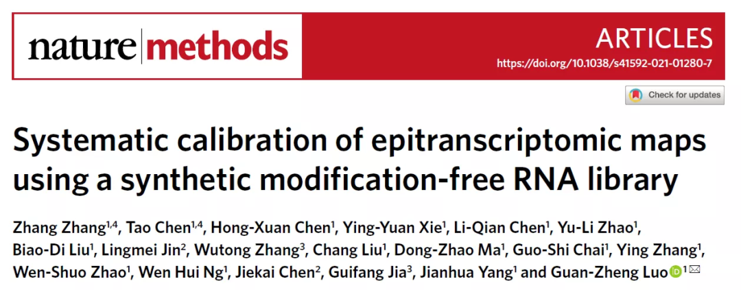 为了解决RNA修饰检测中所面临的方法学难题,我们提出了一种新的研究策略。通过构建全转录组无修饰RNA文库作为负对照,全面评估了现有的基于二代测序的RNA修饰检测技术,并为修饰位点的精确鉴定提供系统的解决方案。该研究成果于9月30日发表在Nature Methods杂志上,题为“Systematic calibration of the epitranscriptomic maps using a synthetic modification-free RNA library”。实验室副研究员张璋和博士后陈涛为共同第一作者,骆观正教授为通讯作者。陈鸿萱、谢应源、陈丽倩、赵玉莉、刘标地、马冬曌、柴国师、张莹、赵文烁等同学也对该工作做了贡献。同时工作还得到了广州健康院的陈捷凯研究员、北京大学贾桂芳研究员和本院杨建华教授的帮助。以下是对文章的解读。
