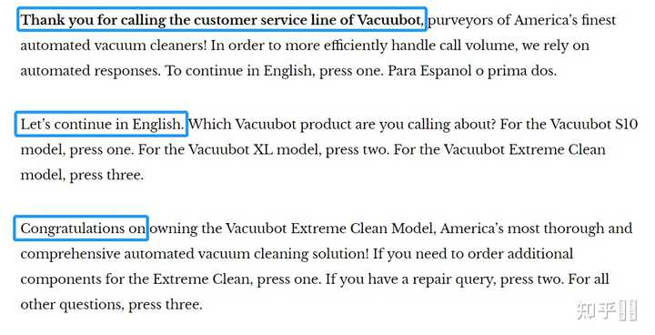 这么说是因为原作全文就只有虚拟客服的回复。(再贴一遍链接:A Thanksgiving Week Gift for You: “Automated Customer Service”)