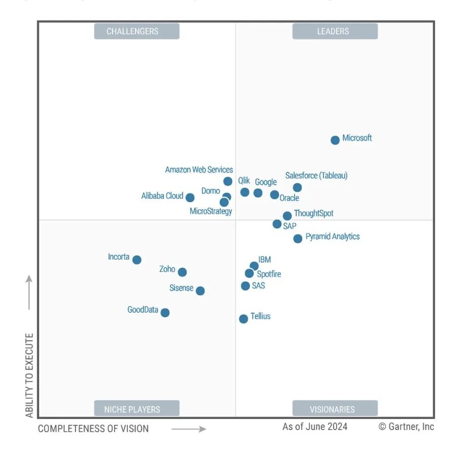 Gartner 2024 商业智能魔力象限报告发布,微软连续 17 年成为领导者