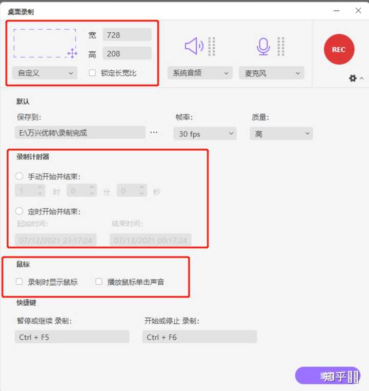 打开万兴优转软件,你可以看到屏幕录制功能键,点开后出现桌面录制的设置界面,比如你可以自定义录制桌面尺寸、比如你可以选择手动开始并结束、定时开始并结束二种形式,还可以对鼠标进行设置:录制时是否出现鼠标,点击鼠标是否有声音等功能,真的是非常方便