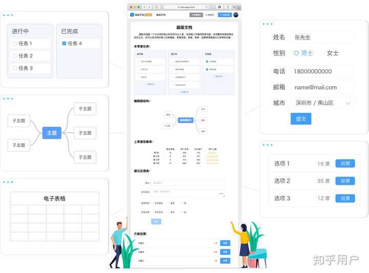 - 超级文档首先是一个多人在线协作文档,可以显著提升中小团队频繁的文档交付和修改反复传带来的效率