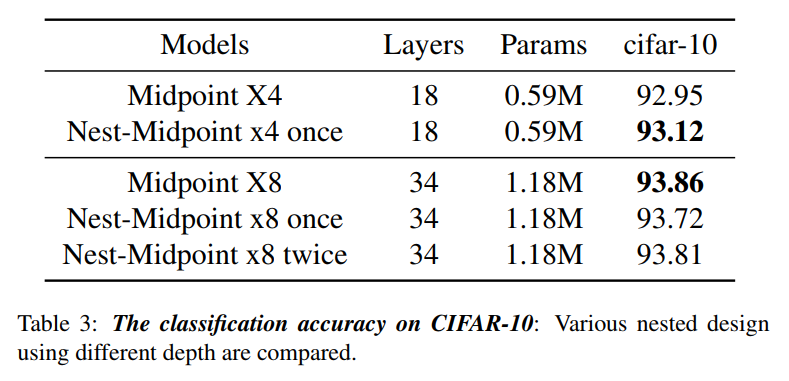 由于收敛是有益的,作者相信在更深的模型中嵌套叠加可能有更好的性能。