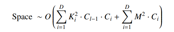 比较了采用相同尺寸、相同数量、相同设计层数的情况。可以用以下方式描述空间复杂性: