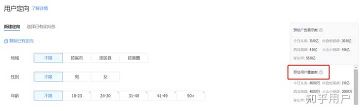 经验:要求排除什么用户、就一定要排除的。常见要排除的是人群包和地域定向。另外,选完定向之后,可以看一下预估用户覆盖数,看人群量级对不对,比如不限制定向的话应当是亿级的,结果这次只有几十万,就得回头看一下、是不是有弄错的了。跟检查作业似的。