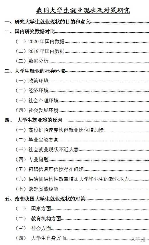 很多学生在论文写作,都喜欢选用一些很大的课题。比如“我国大学生就业现状及对策研究”。虽然看起来好写,文献也多,拼凑下就写完了。但是这种只适合一些函授学生的写法,一般本科是无法通过的。大纲如下: