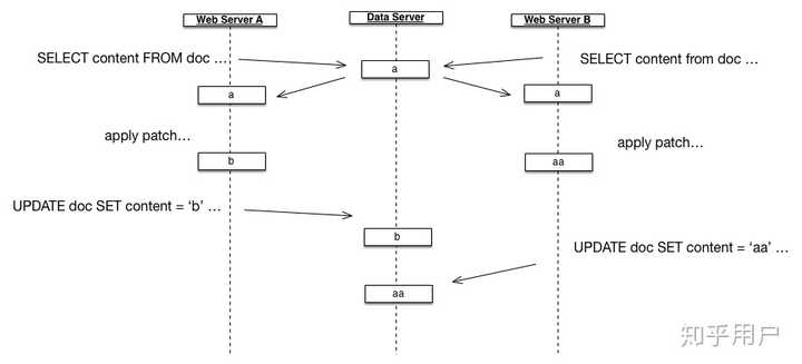 Web Server A 和 Web Server B 同时访问数据库,结果导致 Web Server A 的修改被覆盖了。