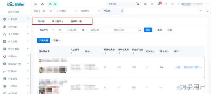 朋友圈的触达是很多人设类的运营需要去用心维护的,很多时候存在一个客服管理十来个号,在朋友圈管理时,就需要通过scrm应用朋友圈群发还有评论点赞啥的聚合类的功能。