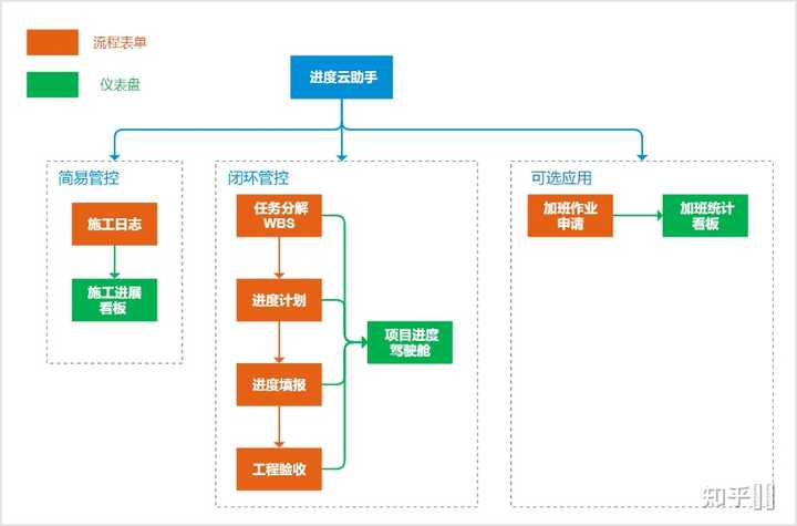 1)进度:使用施工日志收集施工现场基本状况,建立进度“WBS+计划+填报+验收”闭环体系,产值统计,加班作业申请等。