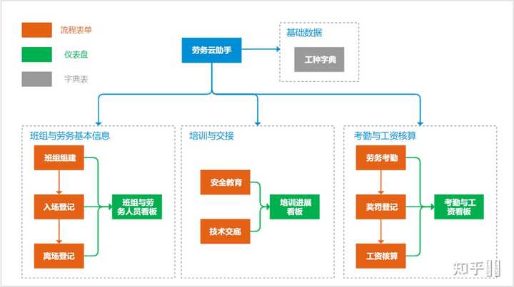 以模板【工程项目管理(可直接安装使用)】为例,展开说下各模块的工作流程和任务: