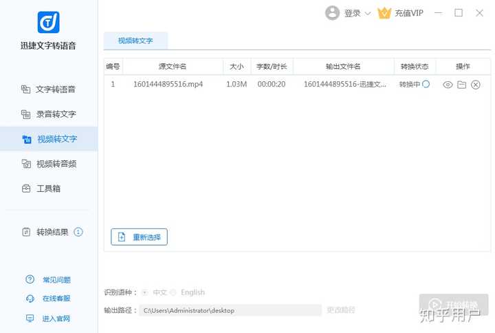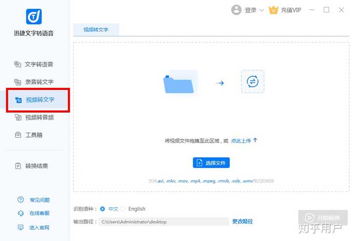 上传或拖曳需要提取视频文字的文件,最后点击开始转换,就好了