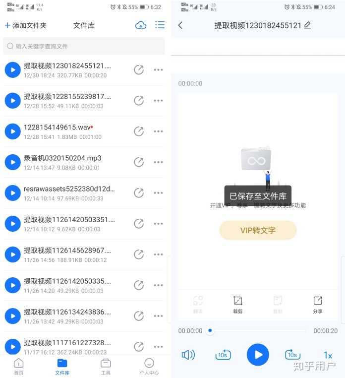 转换完成的文字会保存到文件库里,点击文件库即可查看提取成功的文字。