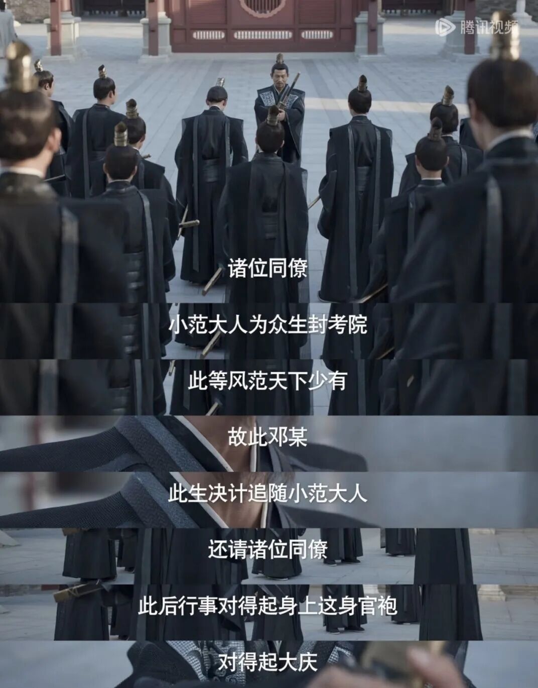 二皇子犯法,范闲冒死进谏,但被庆帝无视。他开始意识到,一切不过是一盘棋,而他只是一颗棋子。他愤怒,他委屈,他一边擦拭着鉴察院门前那块早已铺满灰的石碑,一边咬牙说“撂挑子不干”、“我就是一个普通人“、“人就得学会独善其身。” 每说一句,范闲都更加用力地擦拭,充满了深深的不甘。