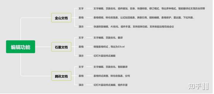 石墨文档在基础编辑功能上是最单薄的,腾讯文档的智能翻译和纠错功能比较出彩,但是在编辑功能上不如金山文档来得全面、丰富。金山文档在WPS对文档编辑能力的积淀下,功能比较全面,能够基本满足Word、Excel、PPT的大部分功能。